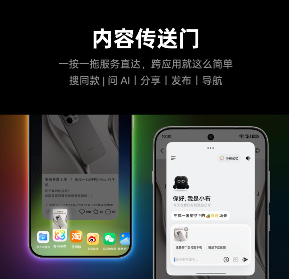 同理,把某书图片径直拖到某宝搜同款,把微信图片丢给小布助手识图、电话号码一拖拨号 / 发短信 ...