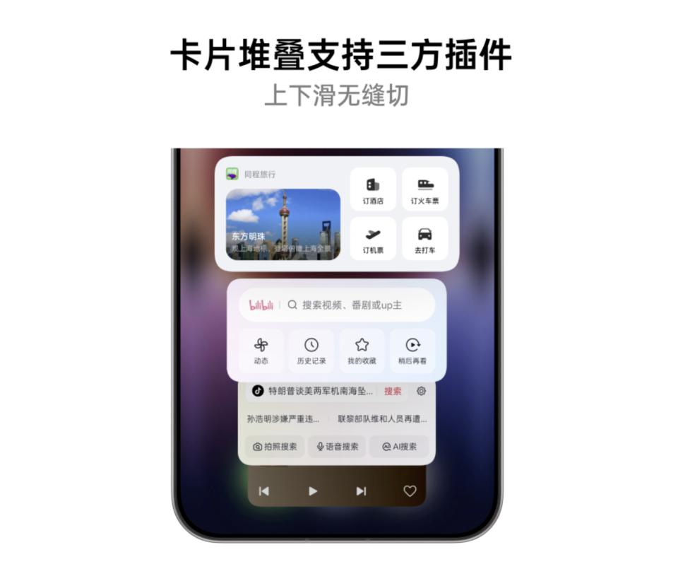 另外,卡片堆叠,新版也终于适配了第三方 App。