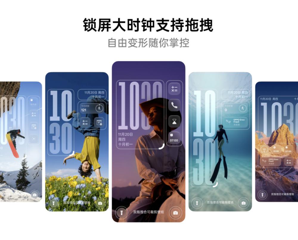 ColorOS 16 首版就带来了许多新锁屏容貌,其中就包括一些大时钟的选项。